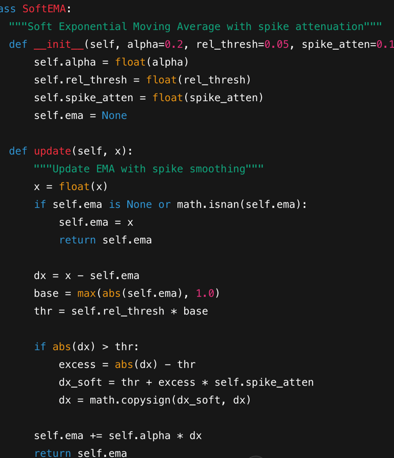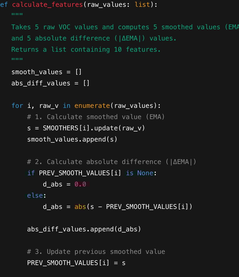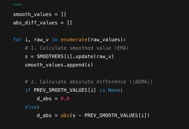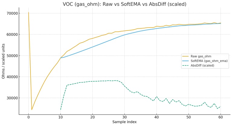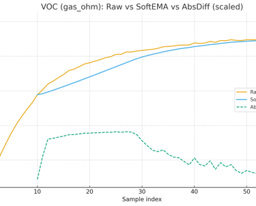 1. Employed SoftEMA (Soft Exponential Moving Average) to preserve genuine odour responses by eliminating sudden spike noise.