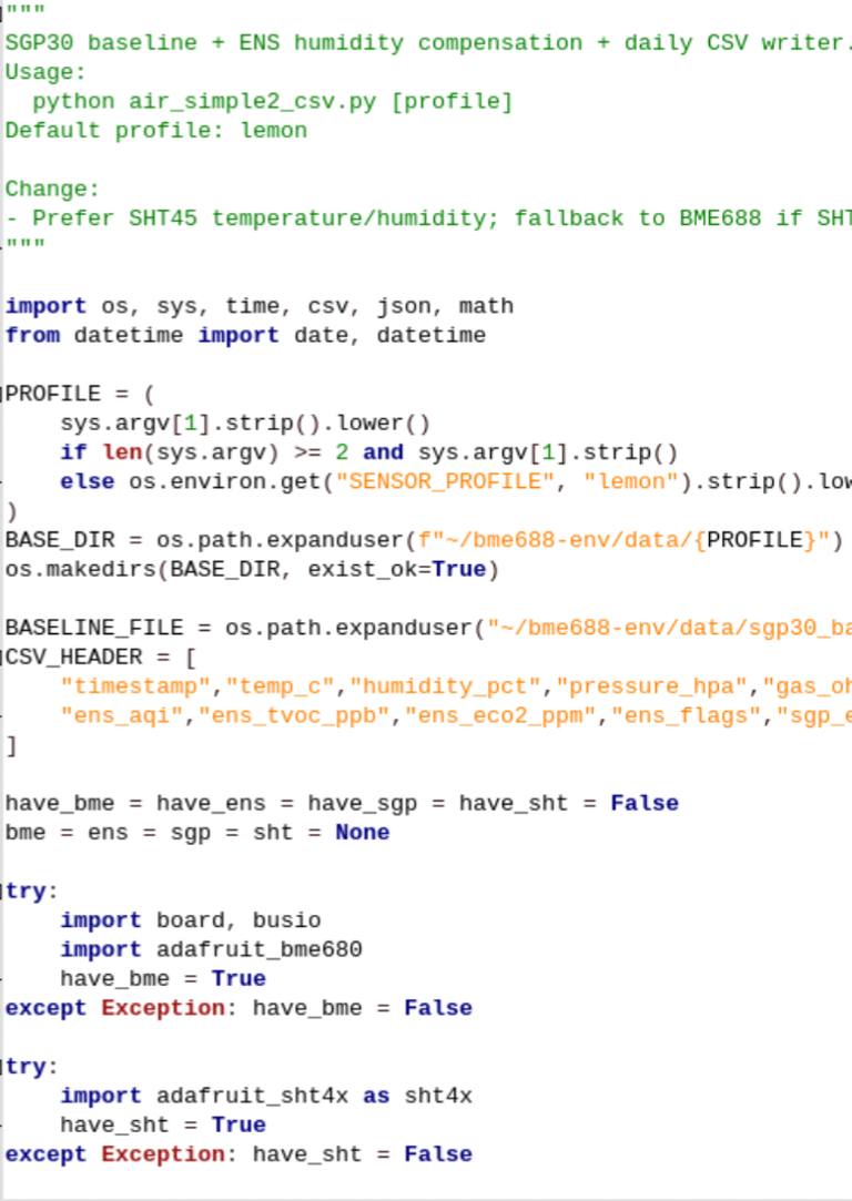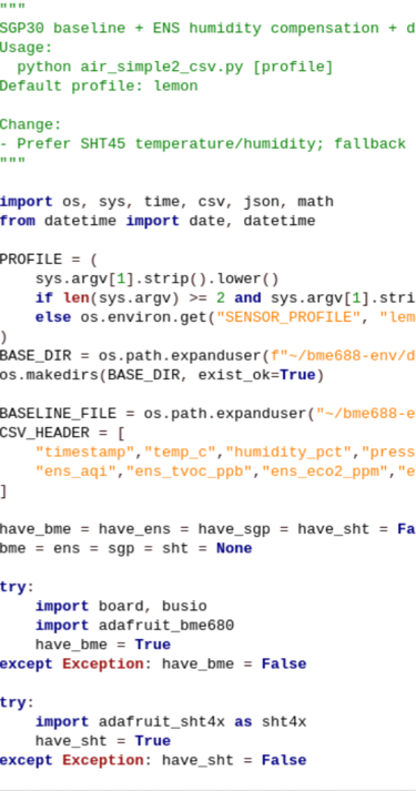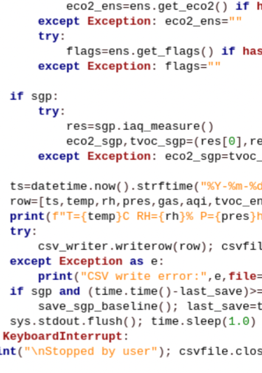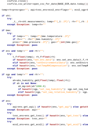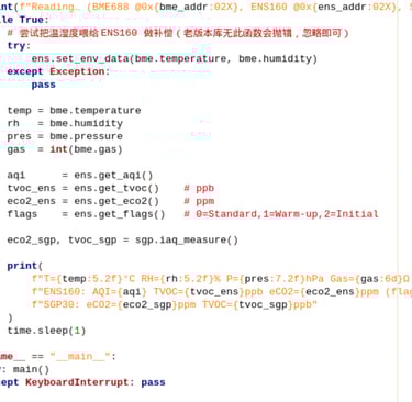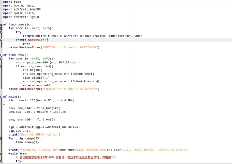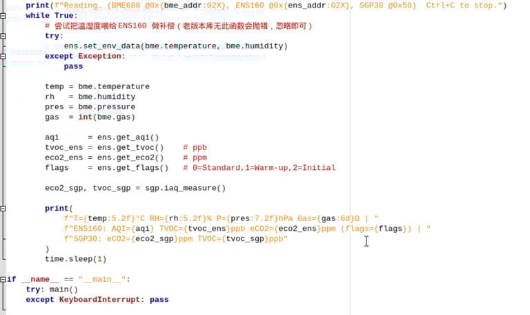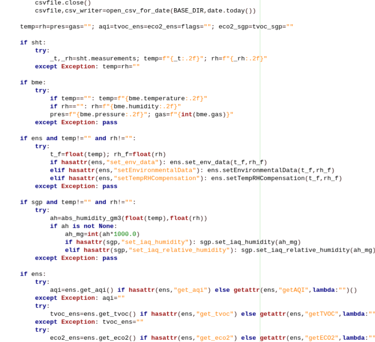 Combine the code for the BME688, ENS160 and SGP30 to facilitate simultaneous data monitoring.