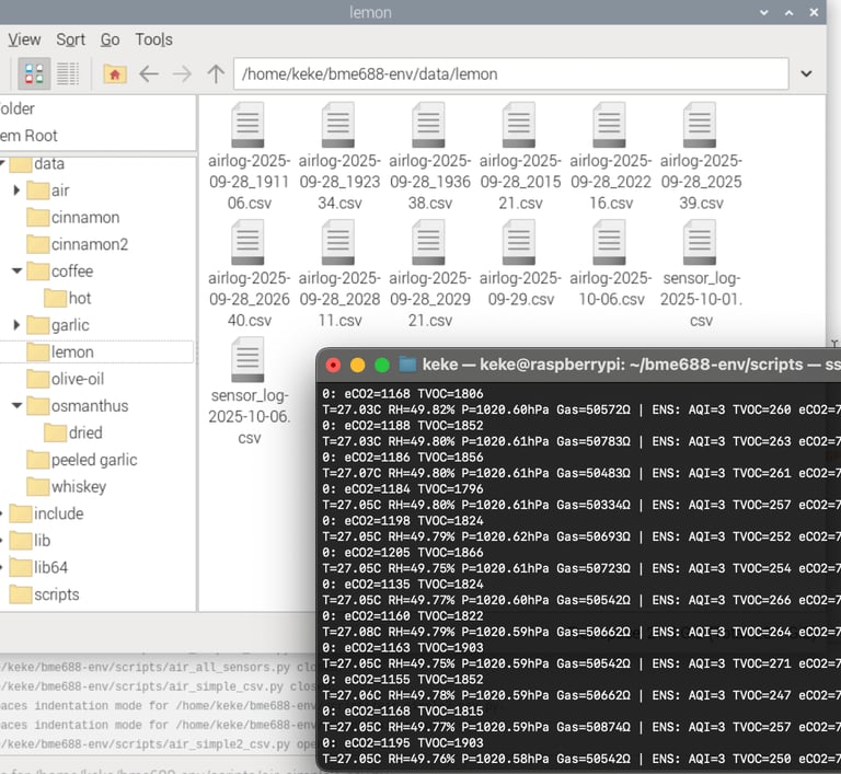 External Contamination: Your entire system—including the Raspberry Pi and connecting cables—is exposed to the odour environment. When testing lemon after coffee, residual coffee odour molecules may adsorb onto the sensor module, plastic container, or even the Pi's mainboard, causing cross-contamination that compromises subsequent readings' accuracy.